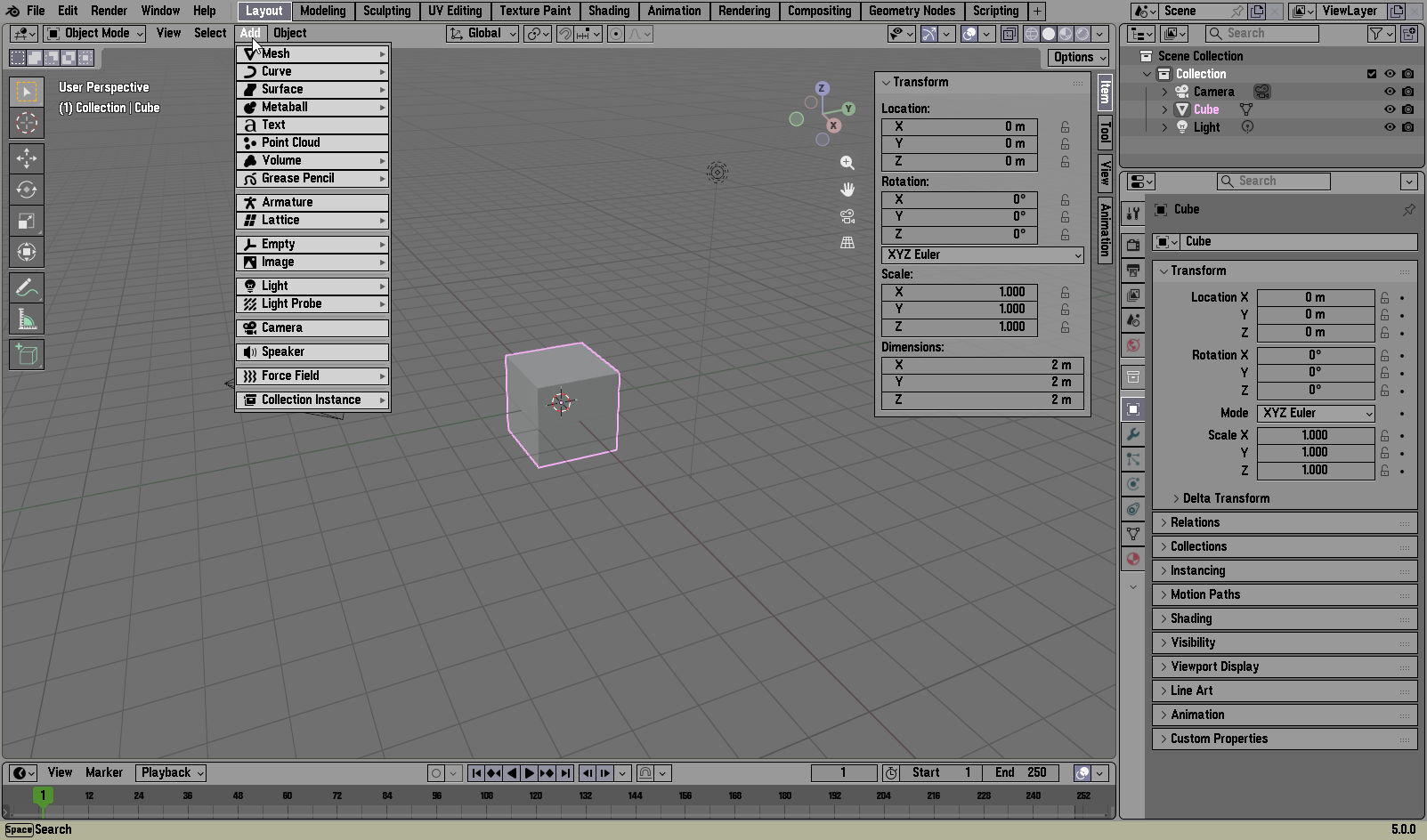 - Editing -> Objects -> New Objects -> ☑ Enter Edit Mode